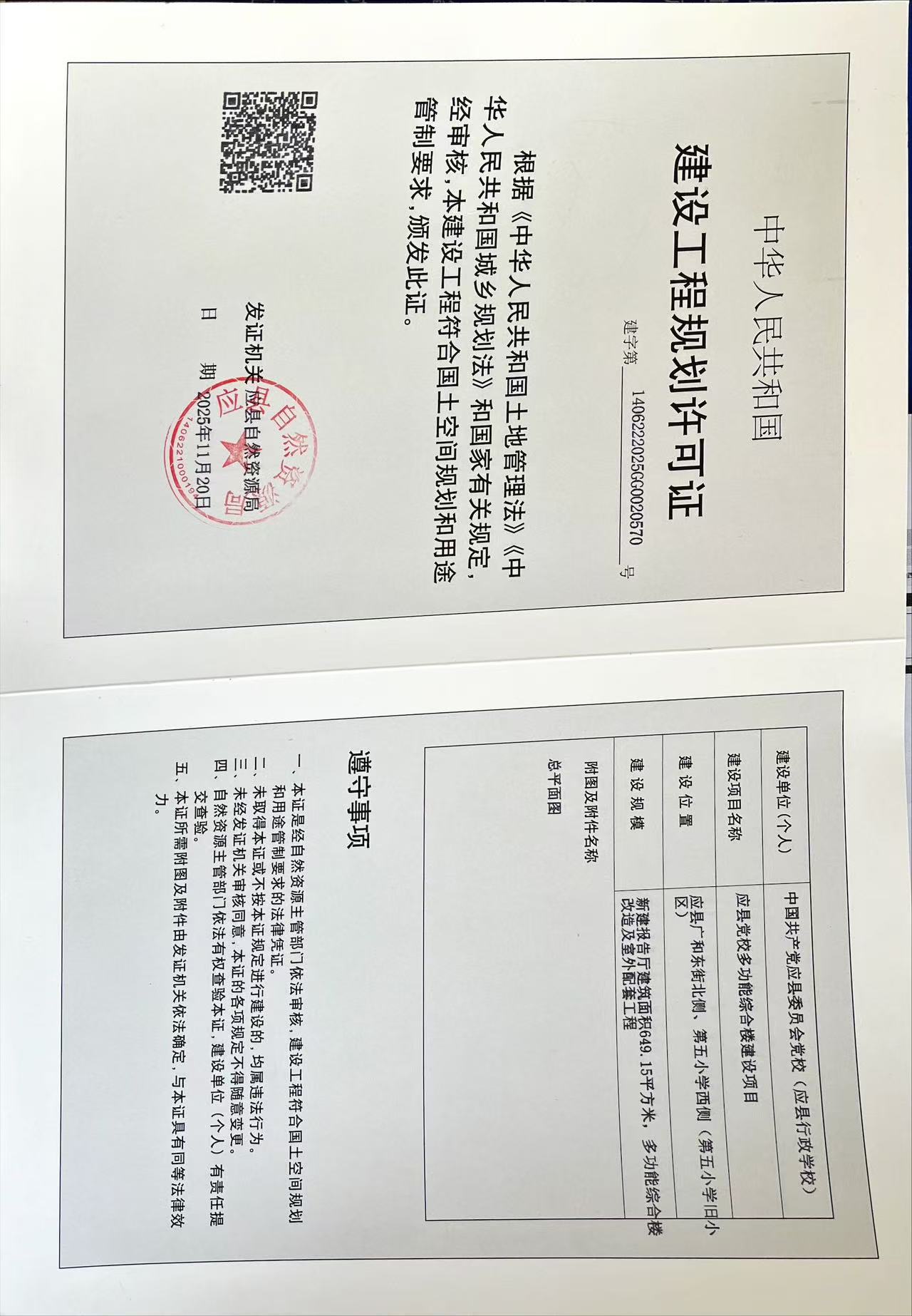 二、《建設(shè)工程規(guī)劃許可證》影印件