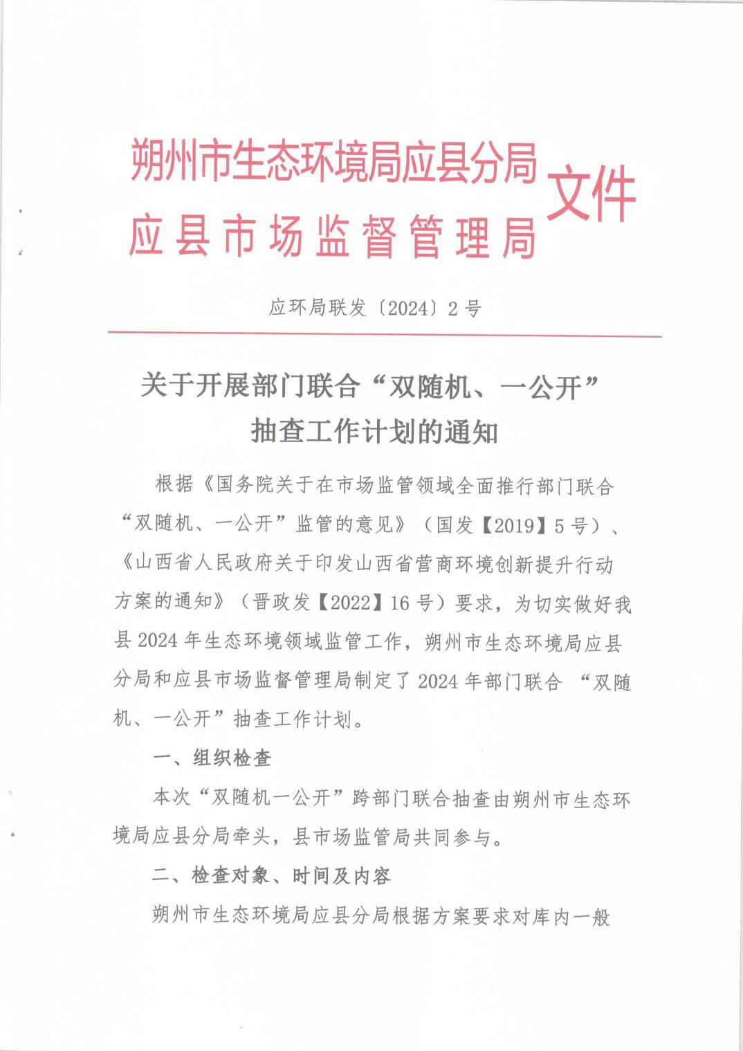 關于開展部門聯合“雙隨機、一公開”抽查工作計劃的通知