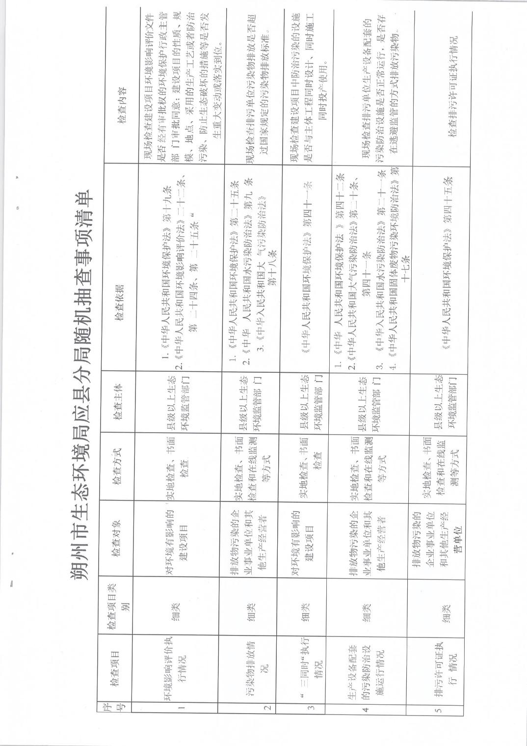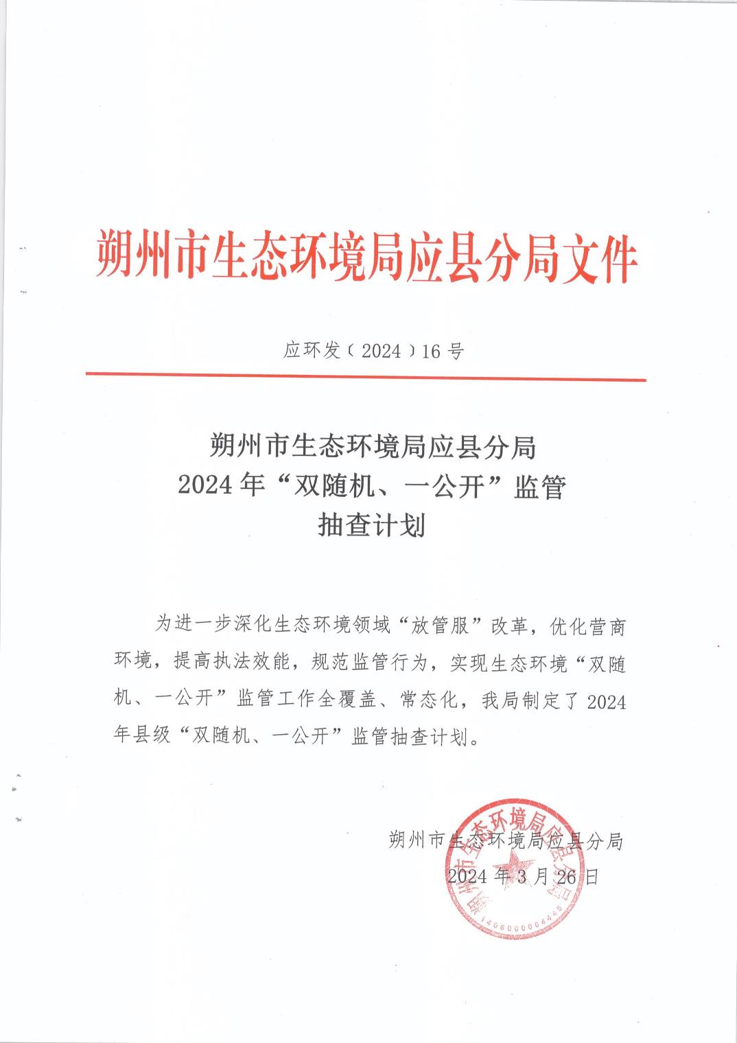 朔州市生態環境局應縣分局2024年“雙隨機、一公開”監管抽查計劃